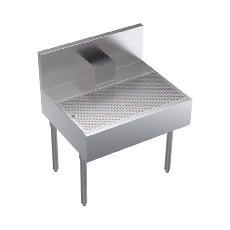 The Krowne KR24-BD30 Royal Series Underbar Beer Drainer is a commercial-grade beverage station designed for efficient underbar organization and workflow optimization. Crafted from stainless steel and measuring 30 inches in width by 24 inches in depth with a 26-inch working height, this unit features a tubing chase at the rear for streamlined plumbing connections and includes a removable perforated insert for versatile drainage. Its stainless steel top, front, and sides ensure durability and ease of cleaning, making it suitable for high-traffic hospitality environments such as bars, pubs, and restaurants where quick beverage turnover and sanitation are critical. This underbar beer drainer adheres to precise dimensions, robust construction, and functionality essential for professional foodservice operations.