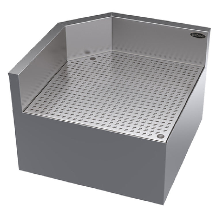 The Krowne KR24-DRC90 Royal Series Underbar Corner Angle Filler is a commercial-grade 90° angle configuration designed to optimize underbar workspace and workflow efficiency. Crafted from durable stainless steel, this underbar angle filler features a clipped rear corner and a drainboard top with a 1" drain, facilitating seamless drainage and easy cleaning. Measuring 24" front to back for compatibility with speedrails, its full rear corner design aids in maximized storage and smooth operational flow in busy foodservice environments such as bars, cafes, and restaurants.