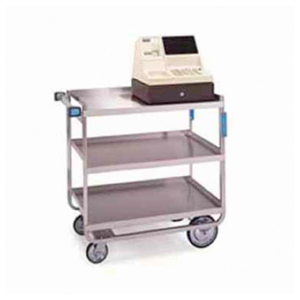 A commercial utility cart is a heavy-duty transportation and storage solution for foodservice environments, typically featuring solid or perforated shelves, durable materials like stainless steel, and mobility elements such as casters. The Lakeside 522 Utility Cart with three open solid shelves is designed for use in kitchens, cafeterias, and catering operations, supporting tasks like dishware transport, ingredient staging, or cleanup. With its robust construction and ample capacity, it facilitates efficient workflow management in restaurant and institutional settings, especially where frequent repositioning and high sanitation standards are required.