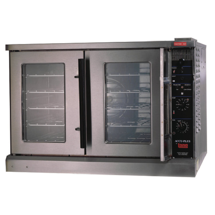 A commercial convection oven is a high-capacity kitchen appliance that uses a fan to circulate hot air evenly around food for consistent cooking and baking. The Lang ECOF-AP1 Strato Series™ model integrates advanced solid state controls, multiple rack positions, and a porcelain interior for durable, efficient operation. Installed in mid-sized restaurants, cafeterias, or institutional kitchens, this oven supports batch cooking with reliable temperature control and energy efficiency, making it suitable for high-volume food preparation and maintaining food quality during service.