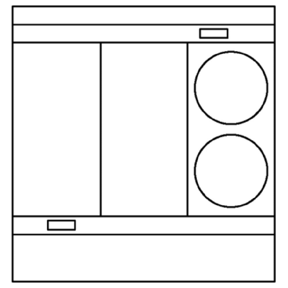 Lang Manufacturing (Middleby), R36C-ATCM, Lang® Marine Heavy Duty Range, electric, 36"W, (2) 8" french plates & (2) 12" hot tops, convection oven base with (6) rack positions and (3) racks, 150-450°F oven thermostat with 1-hour timer, 2" vented stainless steel stub back, 430 stainless steel exterior, flanged bolt-down legs, grab bar, sea rail, 2-piece hatchable construction, UL Marine, NSF, cULus Classified