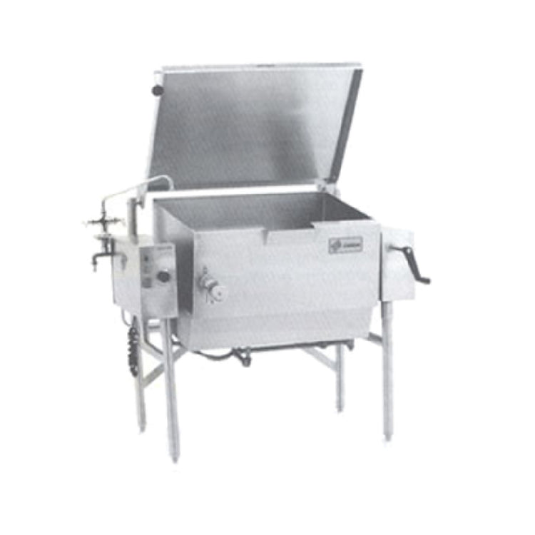 Legion’s TGSE-2440-11-WC stands out with its rugged construction, efficient 120,000 BTU gas heating, and space-optimized wall-mount design. Its stainless steel build offers longevity and ease of cleaning, while the lid with actuator-assisted counterbalance enhances safety and operational speed. The manual tilt mechanism provides precise control for large batch food preparation, outperforming many competitor models in durability and performance.