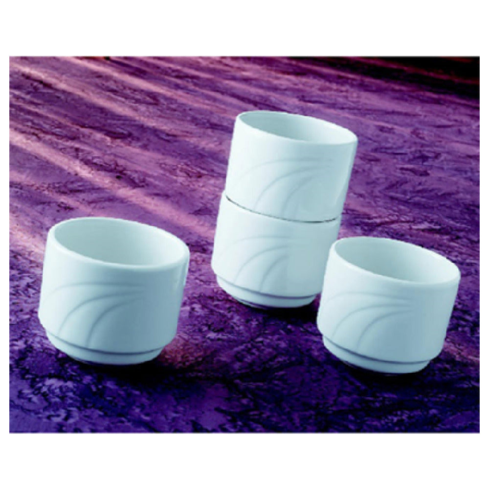 The Libbey 950038005 (Formerly Syracuse China) Mug is a commercial-grade china beverage container designed for high-volume foodservice environments. This 8-1/2 oz. capacity mug features a durable Flint body color and is characterized by its 4-inch diameter and 3-3/4-inch height, making it a precise and reliable option for restaurants, cafes, and catering operations. Its Cascade™ pattern enhances aesthetic appeal, while the non-stackable construction facilitates efficient storage. Crafted from high-quality china, this mug provides excellent thermal resistance and durability suitable for intensive use in busy foodservice settings.