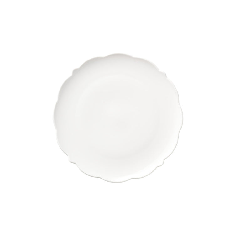 Designed for commercial foodservice settings, the Libbey Astor Plate offers a scalloped rim for elegant presentation, stackability for space efficiency, and porcelain construction for durability. Its microwave and dishwasher safe properties facilitate quick reheating and effortless cleaning. The 10 /14" size makes it suitable for main courses or shared dishes, supporting high workflow volumes while maintaining aesthetic appeal. Its smooth polished foot ensures stability on flat surfaces, integrated seamlessly into busy restaurant workflows.