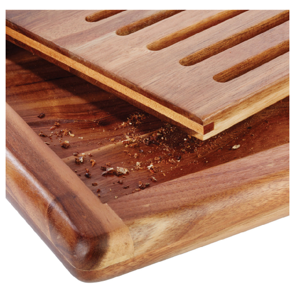 Libbey, APS 00884, Bread Station Cutting Board, GN 1/1,20-7/8"L x 12-7/8"W x 1"H, rectangular, stackable, slotted bread crumb shelf, non-slip feet, acacia, caramel, Akazia, APS® Germany (6 each per case) (Packed By: Cs)