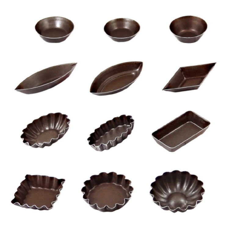 A commercial pastry mold is a durable, food-safe tool designed to shape and bake baked goods, petits-fours, or confections in high-volume foodservice operations. The Louis Tellier 285201 Gobel Mould Set includes a wide variety of shapes and sizes, making it suitable for large-scale pastry preparation in bakeries, catering, and culinary production facilities. These molds support precise dimensions, even heat distribution, and quick release, essential for consistent product quality and efficient workflow in professional environments, especially those focusing on petite baked goods and decorative confectionery production.