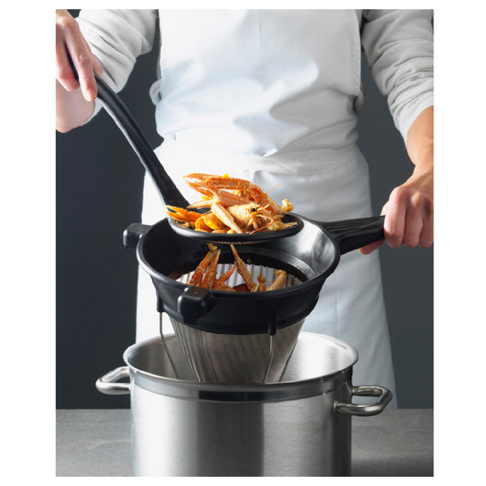 Matfer Bourgeat, 017362MC, Exoglass® Bouillon Strainer, 10" dia., one-piece composite material body & ergonomic handle with pan hooks, wire reinforcement, heat resistant up to 430°F, stainless steel mesh, dishwasher safe, made in France (12 pieces per master case) (Packed By: Cs)
