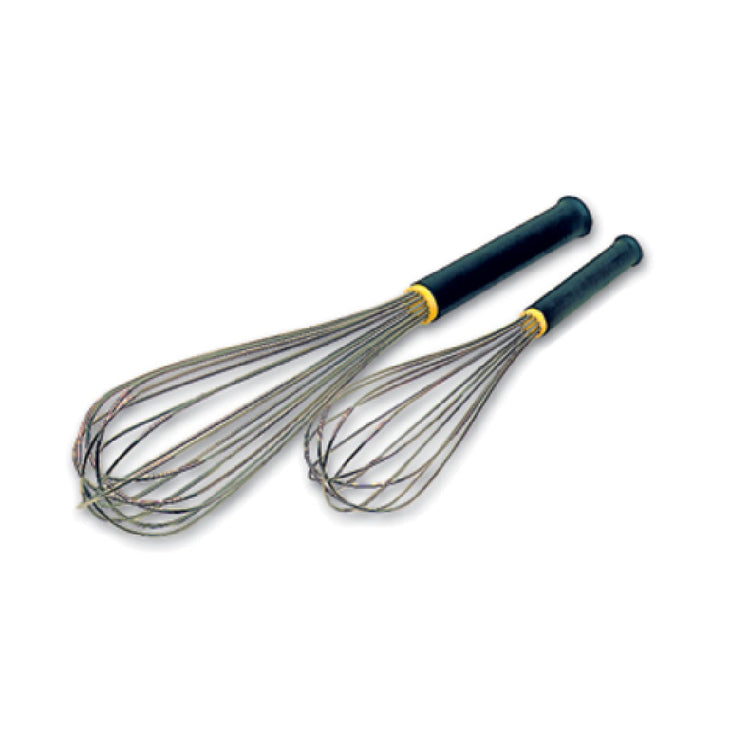 The Matfer 111023 Piano Whisk is engineered for durable, professional-grade mixing with stainless steel spring wire and heat resistance. Its ergonomic Exoglass® handle prevents slipping during intensive whisking, and the non-twist wire ensures consistent performance over extended periods in high-volume settings. Ideal for use in bakery, pastry, and culinary prep stations, it seamlessly integrates into fast-paced commercial workflows. The whisk's design minimizes fatigue, and dishwasher safety simplifies maintenance, making it a staple in high-use commercial kitchens.