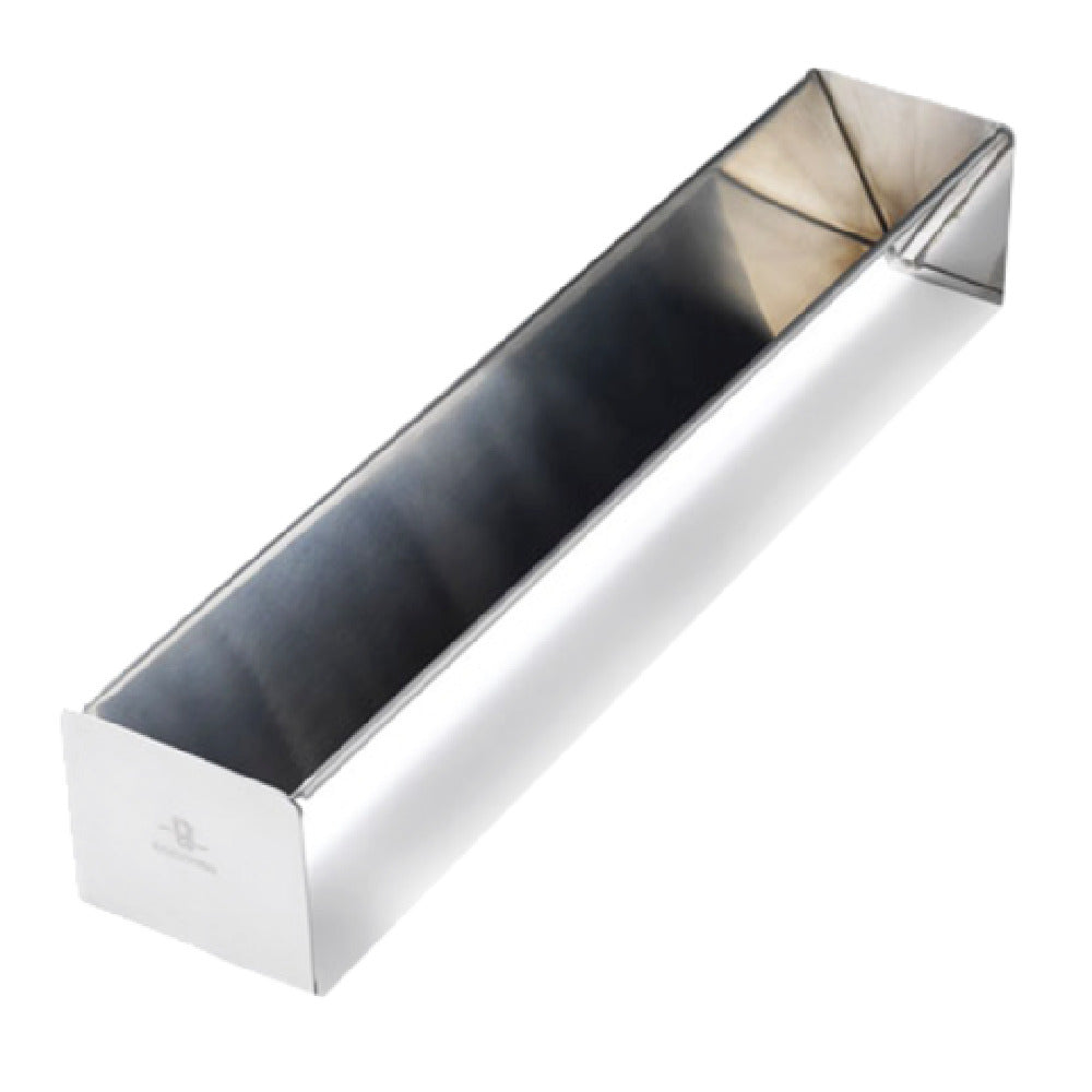 The Matfer 340622 pastry mold combines high-quality stainless steel construction with precise dimensions, optimized for bakery and pastry production. Its sealed design streamlines workflow for high-volume baking, suitable for bakery kitchens and pastry shops engaged in producing consistent log cakes. Built for durability and ease of cleaning, it supports professional baking standards and efficient operations in culinary environments involving structured cake shaping and baking.