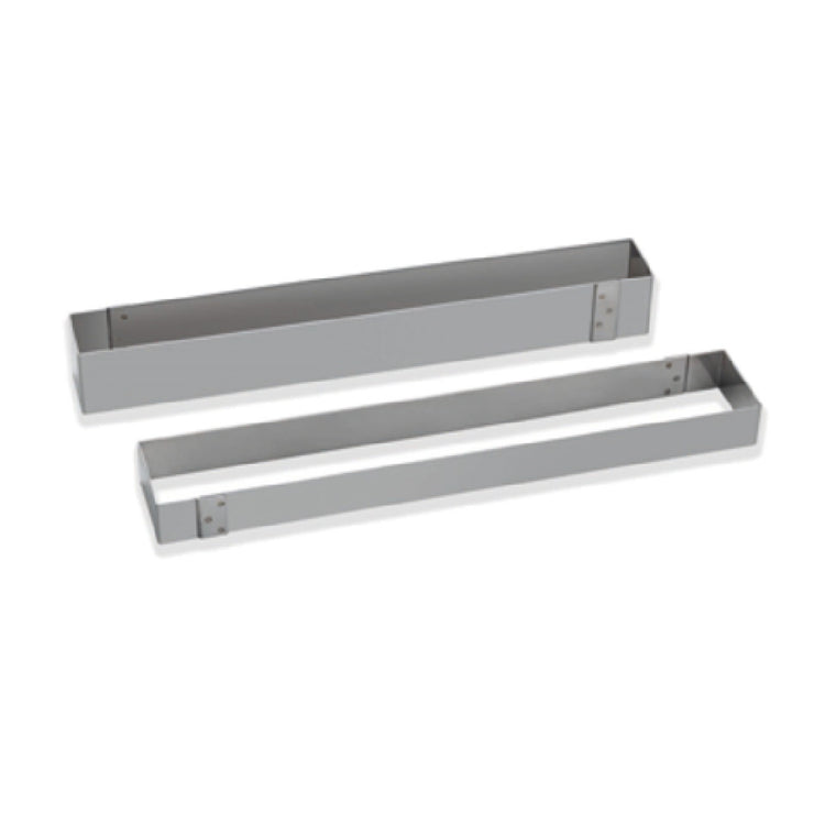 This mousse frame provides a stainless steel, bottomless design optimized for seamless release and flexibility during pastry assembly. Its precise dimensions ensure consistent sizing, while the stainless steel construction offers durability under frequent use. The rectangular shape facilitates straightforward arrangement in workstations, enabling efficient layering and portioning within busy commercial kitchens and bakery operations.