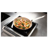 Compared to other fry pans, this model features a ceramic non-stick coating that provides superior food release and ease of cleaning, along with a robust stainless steel handle designed for heavy use. Its induction-compatible construction and lacquered exterior improve longevity and workflow efficiency. The combination of precise build quality and thoughtful design makes it a reliable choice for professional kitchens seeking durable, restaurant-ready cookware that enhances operational performance.