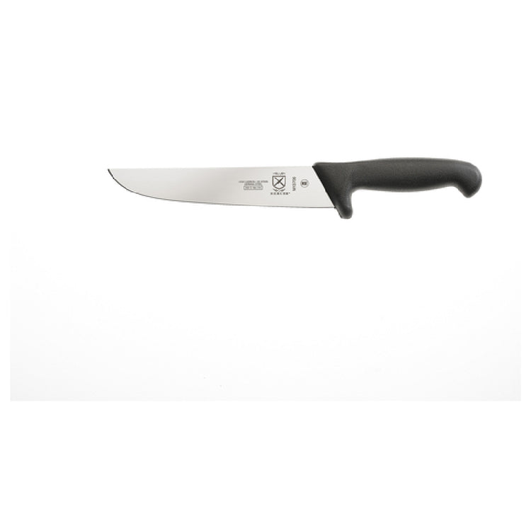The Mercer Culinary M13706 butcher knife features an 8-1/4" high-carbon German steel blade with ice-hardening for enhanced edge retention and durability. Its straight blade design supports clean, precise cuts in busy foodservice operations. The textured glass-reinforced nylon handle ensures a slip-resistant grip, easy maintenance, and ergonomic handling during prolonged use. Ideal for slicing large cuts of meat, the knife’s construction withstands rigorous daily use in commercial kitchens, streamlining meat prep workflows. It is suitable for butchers, sous chefs, and food prep professionals seeking a reliable, restaurant-ready butcher knife.