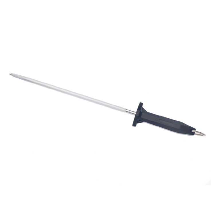 The Mercer Culinary M14502 12" Steel Poly Handle Hanging Ring is a professional-grade kitchen accessory designed for durable meat processing and food preparation tasks. Crafted from high-quality stainless steel, it features a sturdy 12-inch blade with a resilient poly handle for enhanced grip and safety. The hanging ring facilitates efficient storage and sanitation, allowing easy organization in commercial kitchens. This tool is ideal for culinary professionals requiring precise slicing, carving, or portioning, with specifications emphasizing robustness and ease of maintenance in high-volume foodservice environments.