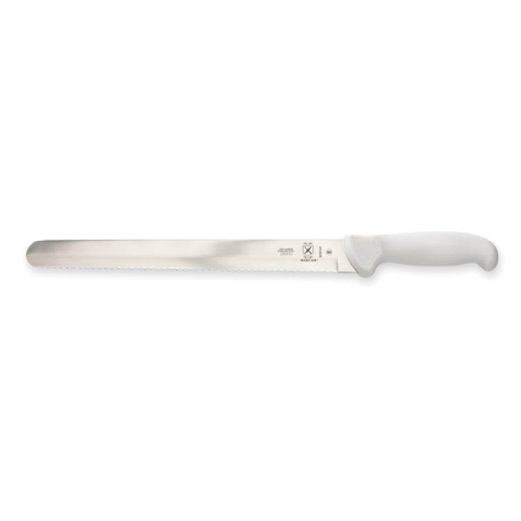 Mercer Culinary M18144 12 Inch High Carbon Knife with Wavy Edge and White Handle
