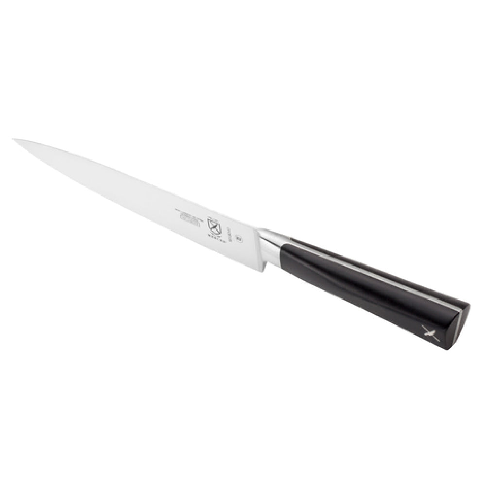 The Mercer Culinary M19040 features a 7-inch blade made from high carbon German steel, ensuring sharpness retention in demanding seafood and meat processing tasks. The forged, one-piece construction provides exceptional durability and ease of cleaning, with a lightweight design weighing just 0.5 lbs to reduce operator fatigue. The handle is molded from impact-resistant POM, available in black, offering a secure, slip-resistant grip. This knife is suitable for intermediate temperature ranges typically found in food prep environments and is designed to resist corrosion while maintaining food safety standards. The total length, including handle, measures approximately 12 inches, optimizing maneuverability for detailed filleting tasks. It complies with food safety protocols without requiring special certifications, making it a reliable addition to any professional kitchen setup.
