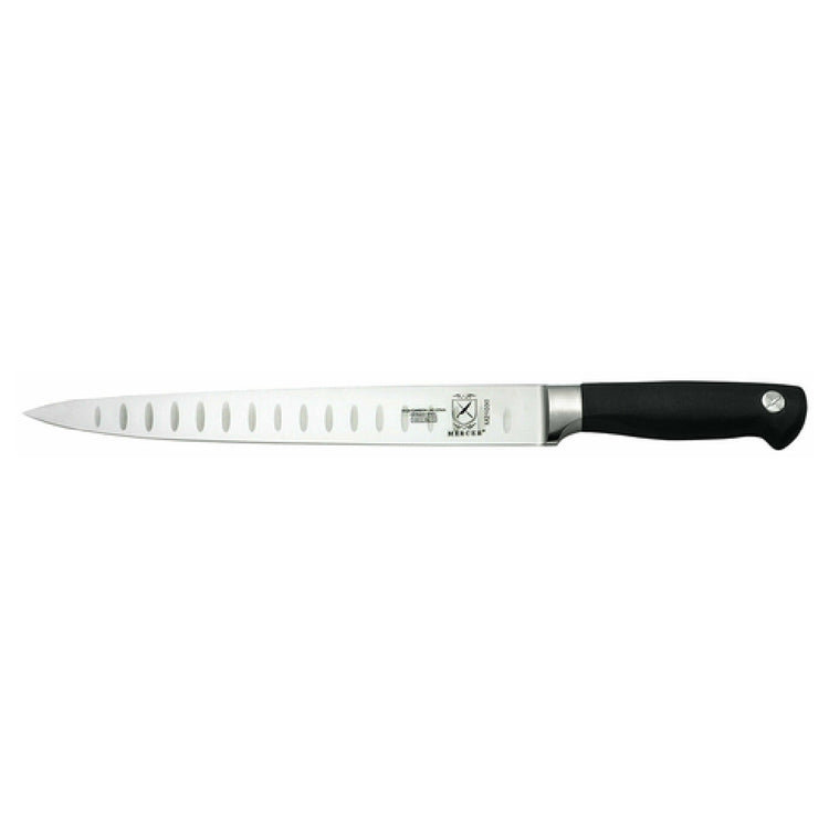 Mercer Culinary M21030 10 Inch High Carbon Stainless Steel Knife Carving with Granton Edge Black Santoprene Handle