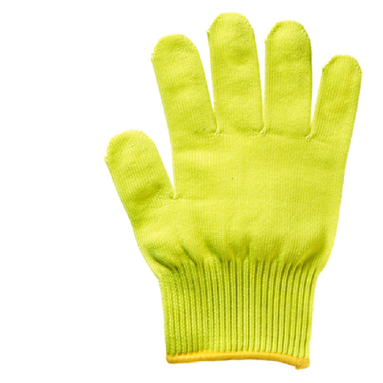 The Mercer Culinary M33415YLXS cut glove is built with a lightweight, polyethylene construction to optimize flexibility and cut protection. It operates with no electrical requirements, relying solely on material properties for safety. The glove’s dimensions are minimal for dexterity, with a weight of 0.17 lbs per piece, ensuring ease of use in fast-paced environments. Its yellow finish with a gold cuff enhances visibility. The glove withstands typical kitchen temperatures and cleaning routines, ensuring performance in temperatures up to safe handling levels. Its antimicrobial-resistance features and FDA-approved materials support hygiene and food safety standards. Sized XS, it fits precisely for smaller hands, supporting delicate tasks requiring dexterity. Designed for repeated use, it resists tears and maintains integrity after frequent washing.