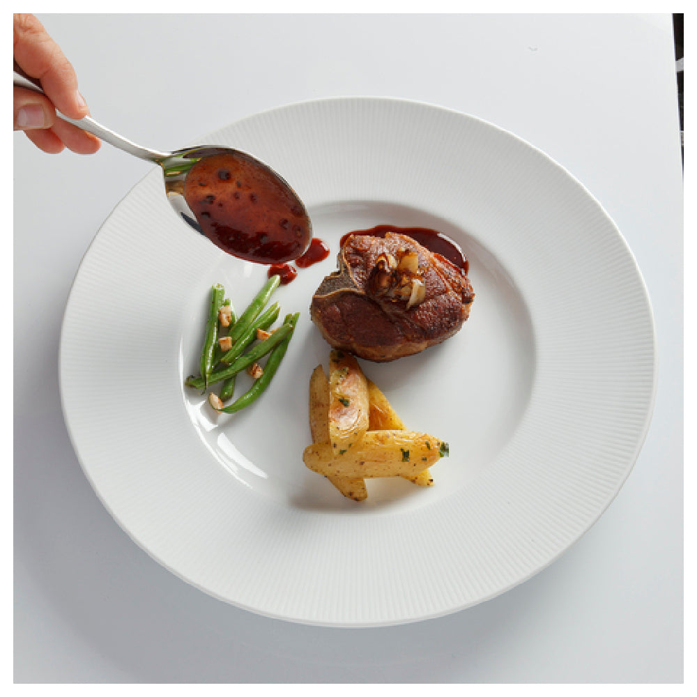 The Mercer Culinary M35140 Plating Spoon combines precision craftsmanship with durability, featuring a solid stainless steel construction, deep well bowl, and mirror finish for high-end presentation. Its dual micro-serration provides enhanced grip and control, ideal for meticulous plating in busy restaurant kitchens. Designed for balanced weight and effortless handling, it simplifies delicate garnish and portion placement, ensuring consistent results. Its easy-to-maintain surface supports sanitation standards, making it suitable for frequent cleaning and use in professional settings. Perfect for use in fine dining, catering, or banquet service, this plating spoon improves workflow accuracy and presentation quality.