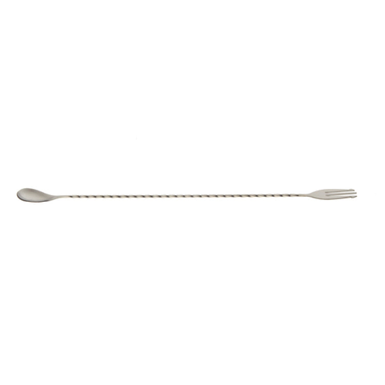 Designed for professional bartenders and foodservice operators, the Mercer Culinary M37016 bar spoon excels in mixing, layering, and garnishing tasks. Its twisted stem offers ergonomic handling, while the 3-tine fork allows for precise ingredient placement. Made from 18/8 stainless steel, it delivers strength and ease of cleaning, ideal for busy bar stations. The 40 cm length optimizes reach without sacrificing control, making it suitable for high-volume cocktail service and barware workflows.