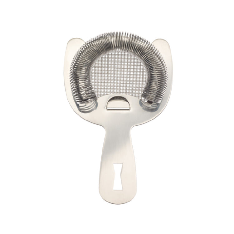 A commercial bar strainer is a professional-grade tool used in bars and beverage establishments to filter liquids, removing ice shards, fruit pieces, and other debris from cocktails and drinks. The Mercer Culinary M37185 Barfly® Fine Mesh Spring Bar Strainer is a stainless steel, hand-held device featuring a fine mesh filter and a spring mechanism to ensure efficient filtration. Installed during beverage preparation, it is commonly used in high-volume bars, restaurants, and cocktail stations to enhance drink presentation and hygiene. Its durability and ease of cleaning make it suitable for continuous operation, supporting fast service in busy foodservice environments.