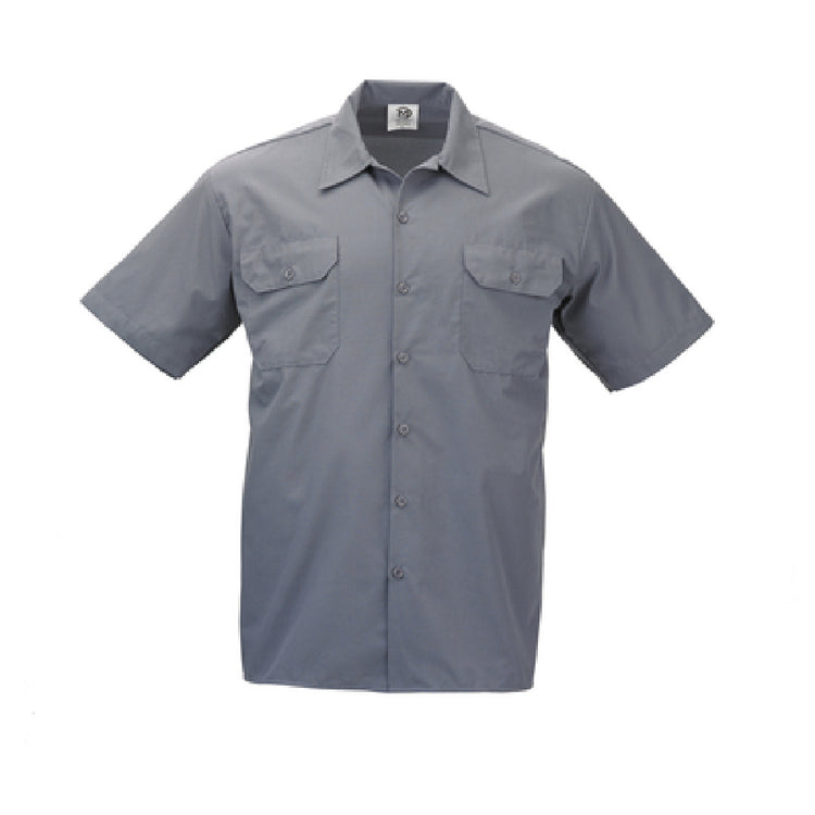 The Mercer Culinary M60250GY3X work shirt is constructed from a high-quality 65/35 poly/cotton blend, offering a lightweight 0.73 lbs fabric weight. Designed in a gray finish, it is sized for Mens Unisex 56 - 58 (3XLarge). It features a button front style, short sleeves suitable for hot environments, and a standard shirt length optimized for tucking or untucking. Its material is compatible with commercial laundering routines, providing reliable sanitation and ease of maintenance. The shirt’s dimensions ensure ease of wear in active kitchen workflows, with a durable fabric gauge suitable for frequent use in busy foodservice operations.