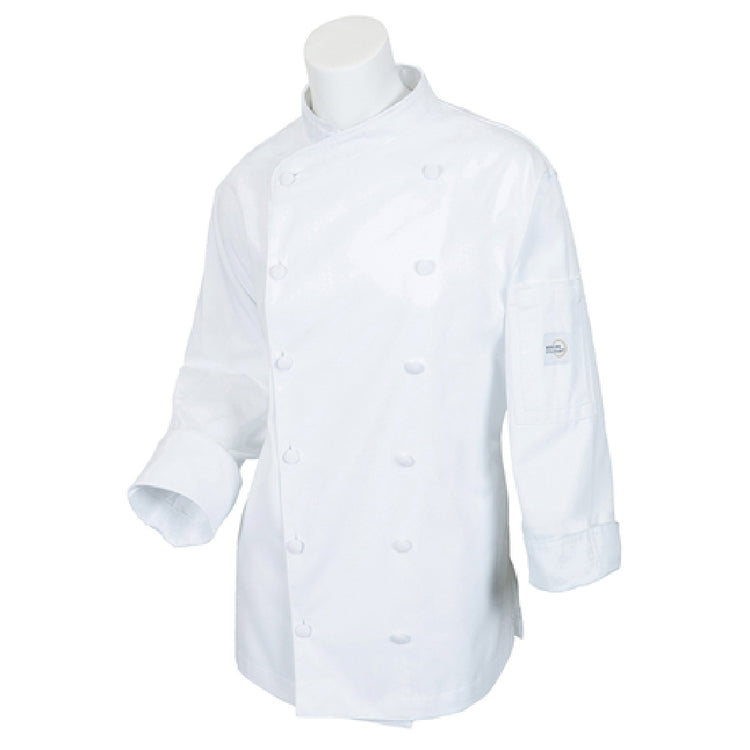 Mercer Culinary M62040WHXS XSmall Women's Chef's Coat with Utility Pocket White Poly/cotton