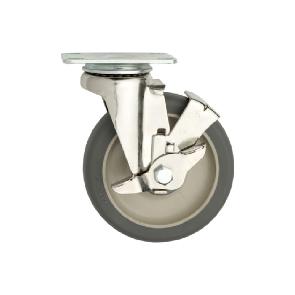 - Polyurethane wheel tread resists wear and chemicals standard in foodservice.