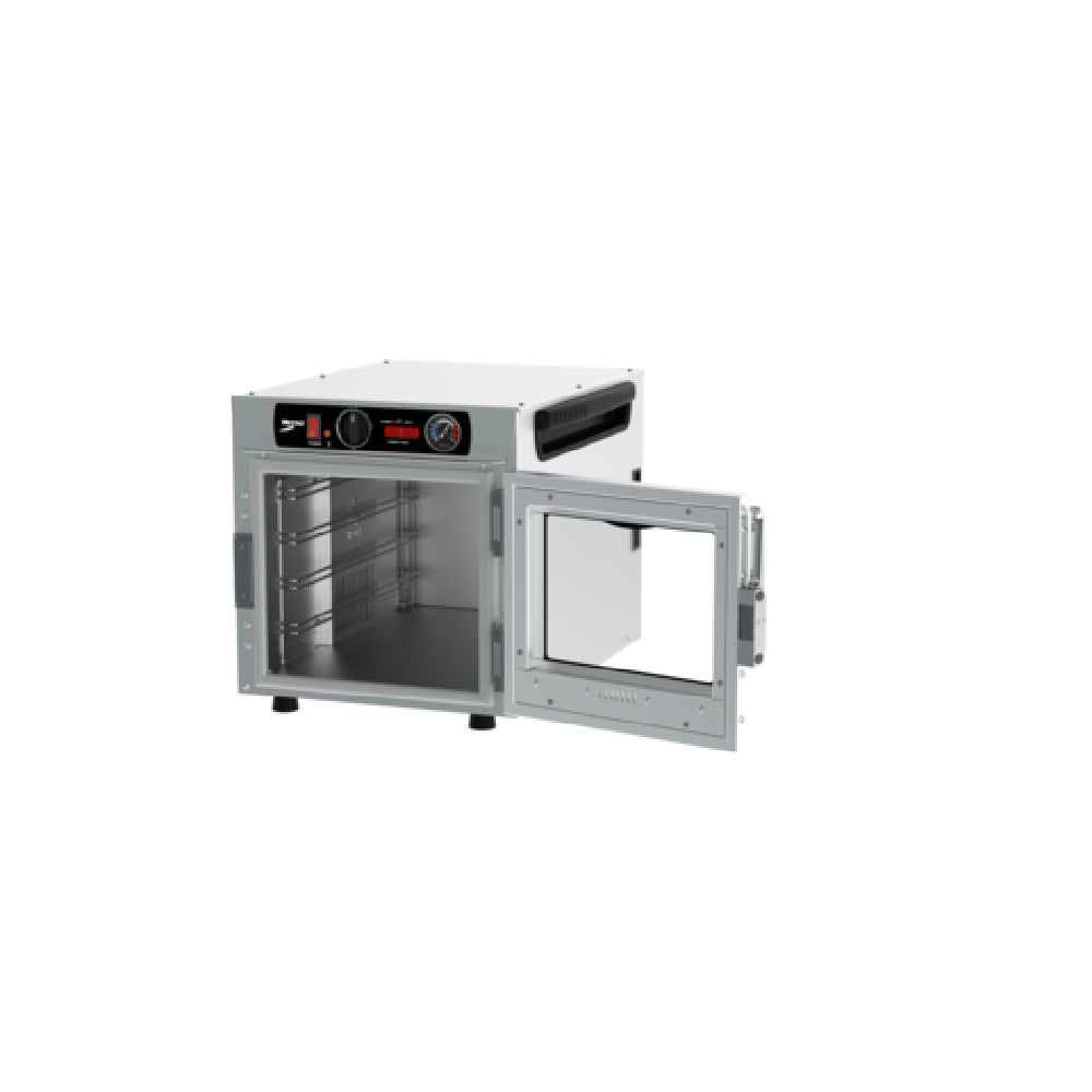 The HotBlox™ Insulated Holding Cabinet efficiently maintains food temperature with independent thermostatic controls, featuring a durable aluminum exterior for commercial robustness. Its stacking design maximizes countertop space, suited for high-demand kitchens. Easy-to-clean hinged glass door allows quick monitoring without heat loss. The unit supports both full and half-size steam pans or sheet pans, streamlining workflow in busy foodservice operations—ideal for restaurants, catering services, or buffets seeking reliable heat retention and space-efficient design.