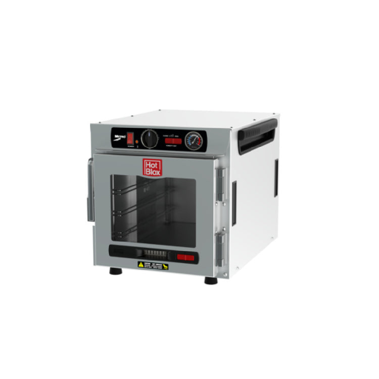 The Metro HBCN4-AC-CT HotBlox™ Insulated Holding Cabinet Narrow (4) Pan Countertop Stacking is a commercial-grade insulated heated cabinet designed specifically for precise food preservation in high-volume foodservice environments. Constructed with an all aluminum exterior, this countertop unit optimizes space while providing reliable temperature control through thermostatic controls. Capable of holding full or half size steam pans and sheet pans, it features a clear hinged door for easy visibility and access. With an electrical load of 875 watts and a standard 120/60/1 power supply, it delivers consistent heat retention, making it suitable for restaurant, catering, or institutional food holding needs. Its robust design and technical specs support continuous operation with efficient energy use and durable performance.