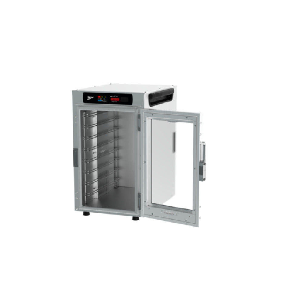 The Metro HBCN8-DC-CT HotBlox™ Insulated Holding Cabinet is a high-performance commercial countertop heating solution designed for precise temperature control and optimal food visibility. Constructed with an all-aluminum exterior, this narrow model accommodates (8) steam or sheet pans, making it suitable for moderate-volume foodservice applications. Its advanced thermostatic controls and clear hinged door facilitate consistent product holding and easy access, while the 2.4" touchscreen interface provides intuitive operation. This unit operates on 875 watts at 120V, 60Hz, single-phase power, with a standard NEMA 5-15P plug. It exemplifies efficient design for holding and warming food in busy kitchen environments while ensuring food safety and energy efficiency.
