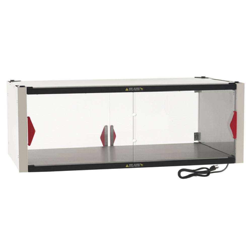 Metro, HS2448-EKIT, Super Erecta® Hot Enclosed Heated Shelf Kit, includes: (1) 48"W x 24"D heated shelf, with powdercoated side panels, clear polycarbonate sliding front doors, clear hinged rear doors, adjustable thermostat to 200°F max temperature, (1) non-heated, stainless steel top shelf, (4) split sleeves, 120v/60/1-ph, 600 watts, 5.0 amps, cord & NEMA 5-15P, NSF, cULus, Made in USA