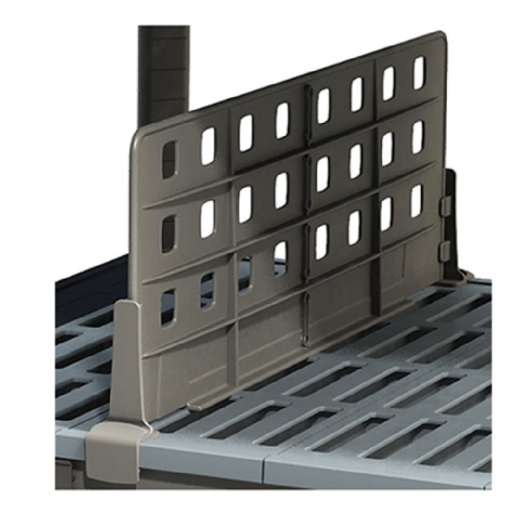 • Engages with both grid and solid shelving for flexible storage