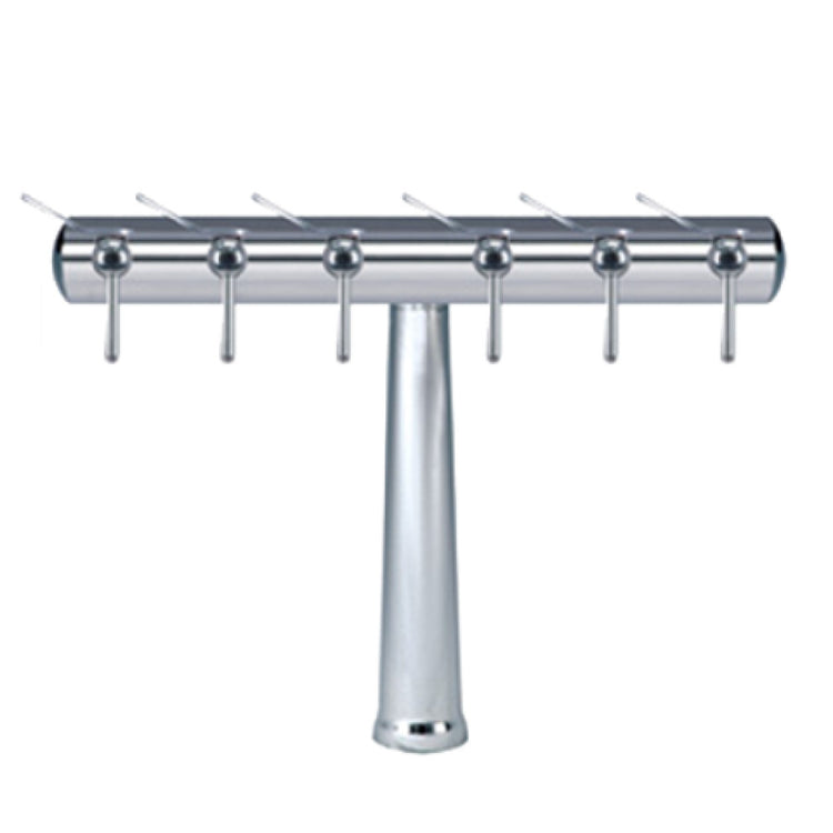 The HAVANA6-C-W draft wine tower offers six polished stainless steel faucets designed for swift, hygienic pouring in busy commercial settings. Its air-cooled system maintains consistent temperature control and durability while reducing maintenance needs. The countertop installation simplifies workflow integration, supporting efficient wine service. Constructed with high-grade stainless steel components, it ensures longevity under high usage. The unit’s 3-1/8-inch-wide base provides stability and seamless placement within compact kitchen or bar layouts, streamlining multi-bottle wine service.