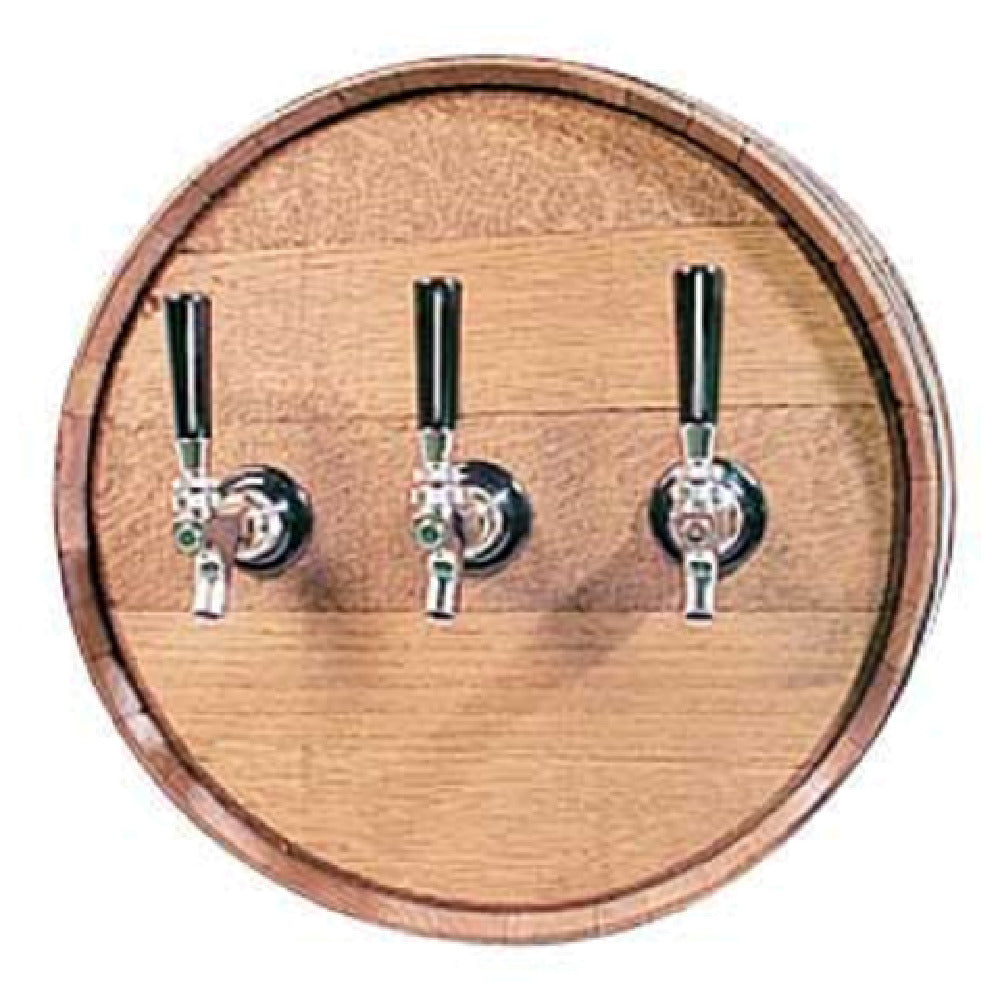 The Micro Matic JWOKE-JE Barrel Head Dispenser boasts a 16-inch solid oak construction with no pre-drilled holes, designed for versatile, professional installation in draft beer setups. It accommodates standard faucet shanks and knobs (not included) for seamless integration into existing beer systems. With typically ships within 1 to 2 days, this no-hole dispenser offers a stable, high-quality platform that resists moisture, ensuring durability and cleanability. Its dimensions provide a flat, even surface suitable for mounting on bar backs, while its material safely endures typical beverage service temperatures. Weighing approximately 4 lbs, this unit combines robust construction with straightforward maintenance, making it ideal for medium-volume draft beer operations in hospitality settings.