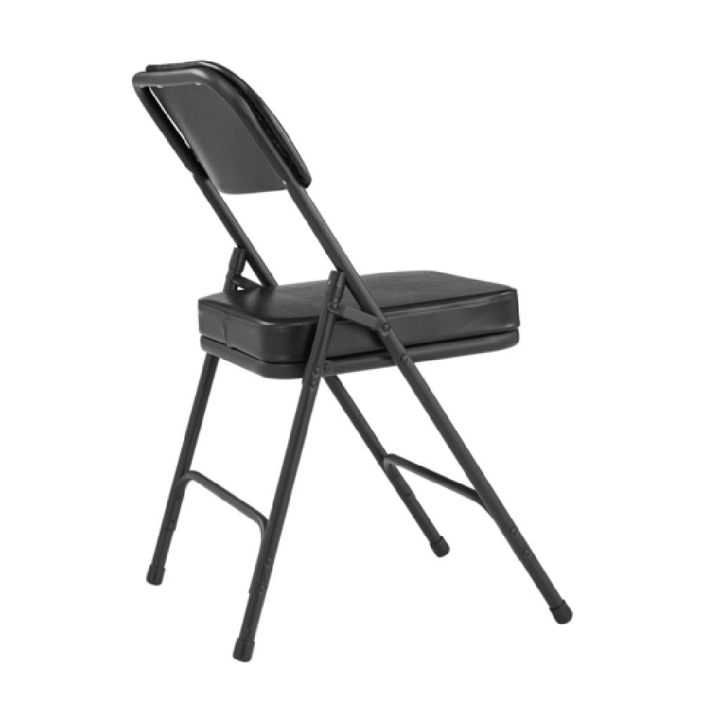 A commercial outdoor folding chair is a durable, portable seating option constructed for frequent use in varied environments such as event venues, outdoor patios, or conference spaces. Crafted from heavy-duty steel with corrosion-resistant finishes, these chairs often include cushioned seats with stain-resistant upholstery, supporting moderate to high workloads. The National Public Seating 3210 NPS® 3200 Series Premium Upholstered Folding Chair is specifically designed for versatile, long-lasting performance, suitable for outdoor hospitality, banquet, or recreational applications requiring lightweight and space-efficient seating solutions.