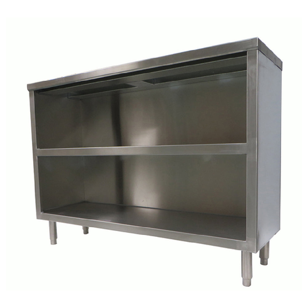 Designed specifically for commercial dish storage, this open-front dish cabinet integrates a 14/300 stainless steel top with an 18-gauge stainless steel base to withstand demanding kitchen environments. Its fixed mid-shelf enables efficient organization and quick access to items. The unit’s stainless steel construction ensures sanitation and long-term durability, while adjustable legs provide customized leveling in busy service areas. Ideal for accommodating dishware in high-volume foodservice operations, the cabinet supports smooth workflow and reliable storage in various kitchen layouts.