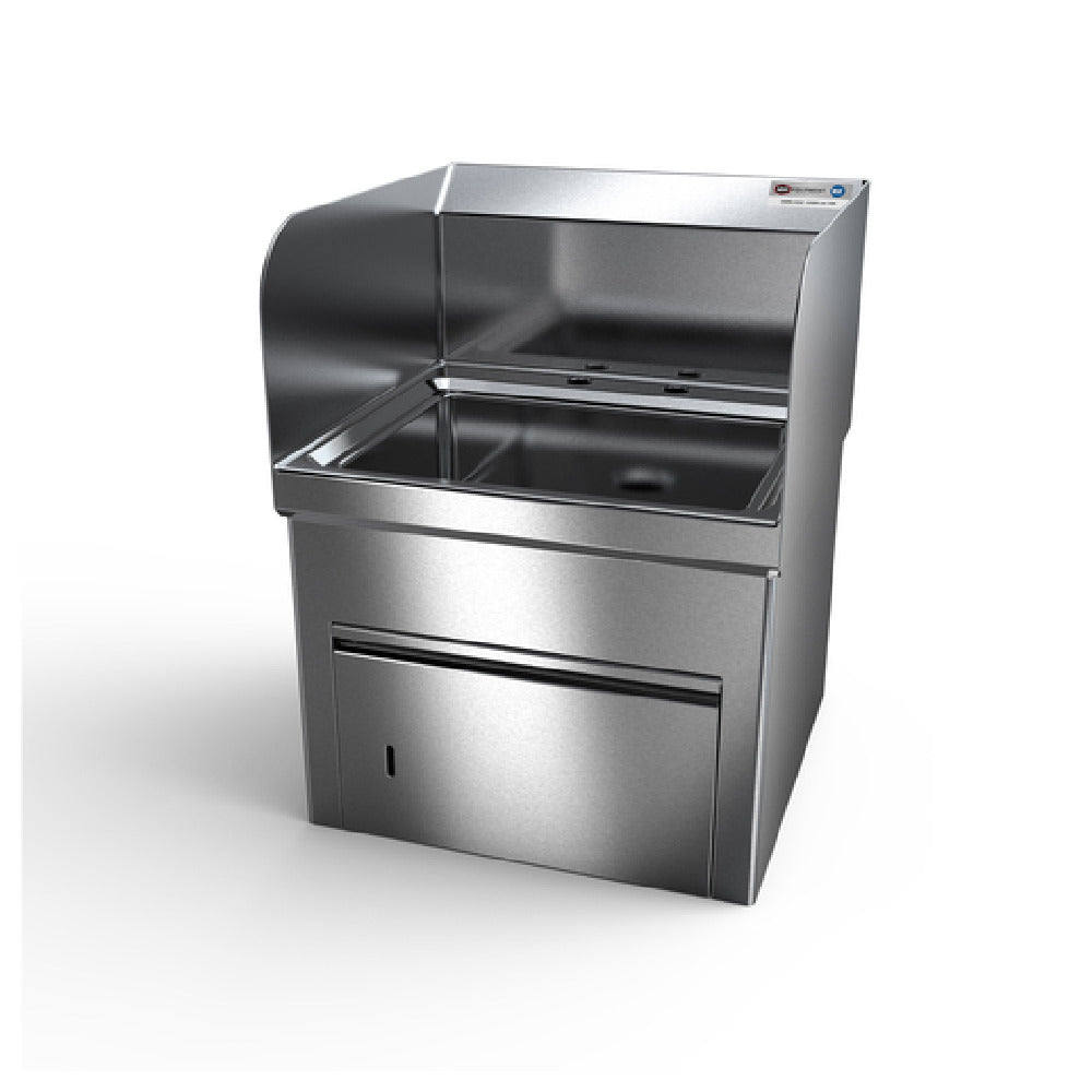 • Features side splashes and towel dispenser for hygiene compliance
