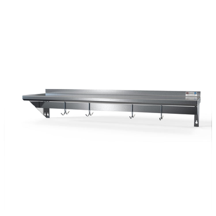 NBR Equipment PS-1272 72 Inch Wall Mount Overshelf with Pot Rack Stainless Steel