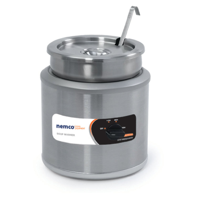 Nemco Food Equipment, 6100A-ICL, Countertop Round Warmer, 7 quart, with inset, cover and ladle, stainless steel construction, adjustable thermostat, 120v/60/1ph, 550 watts, 4.6 amps, 6 ft. cord, NEMA 5-15P, cETLus, NSF