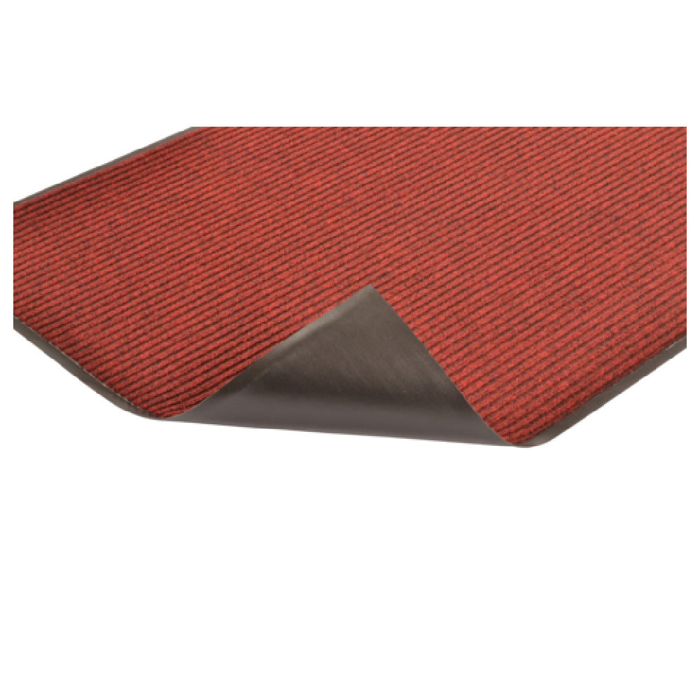 Notrax, 109S0035RB, 109 Brush Step Scraper Floor Mat, 3' x 5' x 3/8" thick, 100% polypropylene ribbed with vinyl back, 1" solid vinyl border, fade resistant, red/black (boxed)
