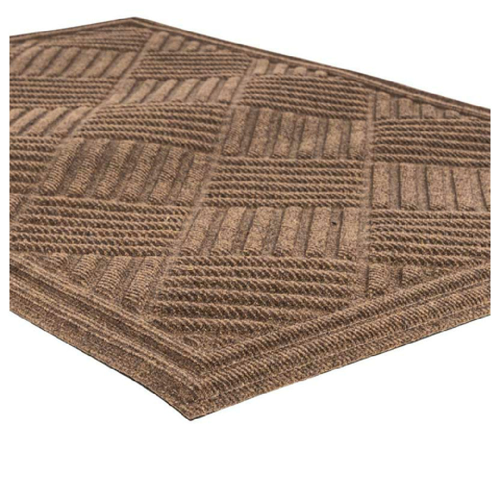 A commercial floor mat carpet is a heavy-duty entry surface designed to withstand high traffic while trapping dirt, moisture, and debris. The Notrax 151S0046BR model, characterized by its high/low diamond pattern, is installed in indoor facilities such as retail stores, restaurants, or industrial foyers. Its durable yarn fibers and rubber backing ensure longevity and safety, making it suitable for moderate-volume foot traffic environments, where effective contaminant removal and workspace safety are priorities.