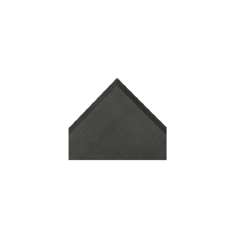A commercial floor mat is a durable protective and safety accessory designed for high-traffic work environments such as kitchens, food prep areas, and hospitality facilities. It provides slip resistance, shock absorption, and fatigue relief, especially in settings where standing for long periods is common. The Notrax 425S3640BL is a medium-duty anti-fatigue mat constructed with a grease-resistant rubber surface and a rubberized sponge core, making it suitable for installation in cashier stations, stand-up counters, and other foodservice stations. Its functional design helps reduce worker fatigue and improve safety during the typical workflows of restaurants and cafeterias, especially in environments prone to oil, grease, and moisture exposure.