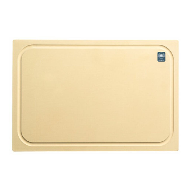 The Notrax T45L2G15BF cutting board incorporates a 1/2" thick, high-density antimicrobial rubber composition, optimized for commercial sanitation standards. It measures 15 inches in width, 20 inches in depth, with a weight of 6.48 lbs, ensuring stability during rigorous use. The board is designed with a long side ranging from 19" to 24" and a short side from 13" to 15", facilitating easy placement and handling in large food prep stations. Its construction includes NSF certification, confirming compliance with industry sanitation protocols. The material endures operating temperatures typical of kitchen environments, supporting efficient workflow. The surface features grooves for drainage, aiding in hygiene and workflow efficiency. Made in the USA, this rubber cutting board supports demanding industrial applications with simple maintenance routines—resurfacing as needed and cleaning with standard protocols. Its non-porous, antimicrobial surface facilitates hygienic food prep, supporting safe and reliable operations. Electrical requirements are not applicable; focus remains on physical and performance specifications, with no need for additional plumbing or ventilation systems.