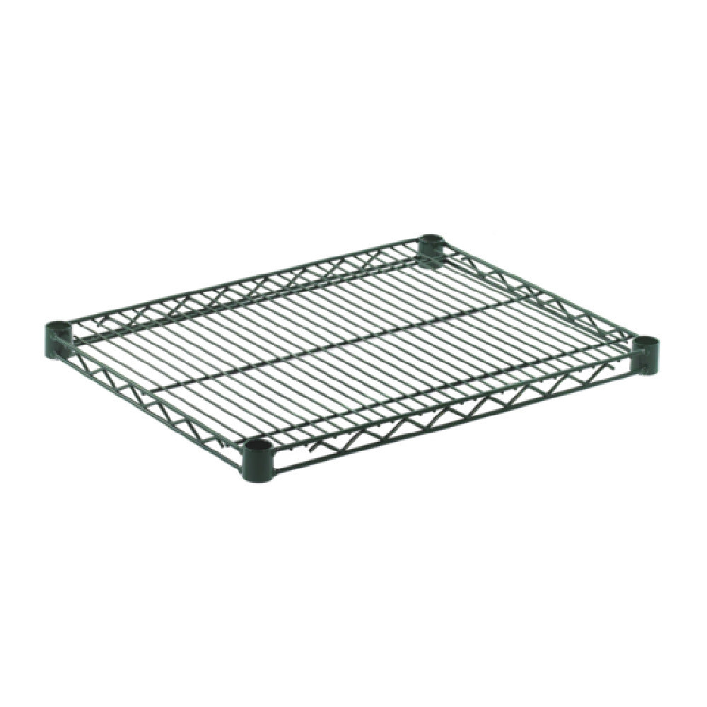 The Olympic J1824K Wire Shelf, 18" x 24", is a robust commercial shelving solution designed for storage and organization within foodservice environments. Constructed with a corrosion-resistant green epoxy finish over a chromate substrate, this wire shelving unit delivers durability, stability, and ease of maintenance for heavy-duty applications. Its precise dimensions of 18 inches in depth and 24 inches in width make it suitable for tight spaces while maximizing storage capacity in kitchens, storerooms, and prep areas. Approved for food contact standards, it offers a reliable framework for storing ingredients, tools, or supplies in high-volume operations.