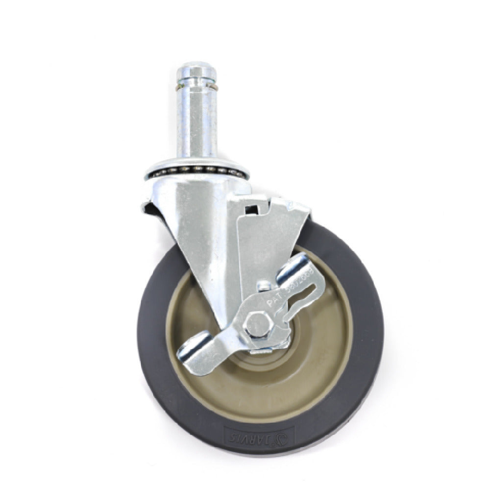 Olympic, J5FBA-4, Stem/Swivel-Brake Caster Set, includes (4) 5" dia. casters with brake, 1-1/4" face, non-marking, high modulus rubber tread, 300 lb. capacity per caster, NSF