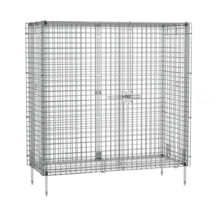 This security enclosure kit offers a sturdy, chrome-finished structure designed for versatility in moderate throughput foodservice settings. Its side-hinged doors enable easy access while maintaining security; the kit’s durable materials resist corrosion and wear. Designed for quick integration, it accommodates additional shelving and posts to fit specific storage workflows. The precise dimensions optimize space efficiency in commercial environments, supporting organized storage of supplies and equipment, and facilitating workflow safety and sanitation protocols. The setup supports common installation practices within kitchen or storage areas, ensuring long-term performance and ease of maintenance.