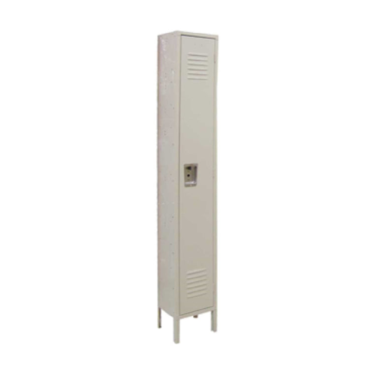 A commercial locker is a durable, space-efficient storage unit designed for organized personal or equipment storage in institutional, foodservice, or industrial environments. The Omcan 13124 locker is a floor-mounted, single-tier steel unit with a 12-inch by 18-inch footprint and a 71-inch interior compartment height, suited for applications needing secure personnel storage or supply management. Installed in locker rooms, break areas, or service stations, it provides robust, corrosion-resistant storage ideal for mid-volume use in busy foodservice operations.
