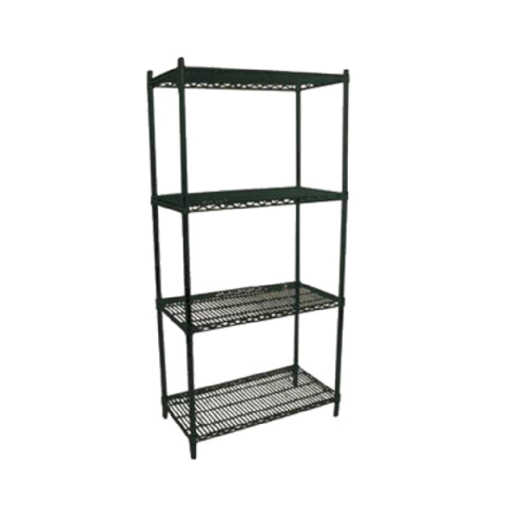 The Omcan 20150 wire shelving system operates as a non-electric, commercial storage solution with dimensions of 72"W x 24"D, crafted from epoxy-coated steel that weighs 23 lbs. Its construction ensures resistance to moisture and chemical cleaning agents, with an NSF certified quality standard. The epoxy finish is specified in green for corrosion resistance, supporting medium workload storage in busy kitchen environments. Overall, this shelving unit offers straightforward assembly with a durable, commercial-grade build suitable for food storage, with dimensions designed for efficient space utilization in various kitchen settings.