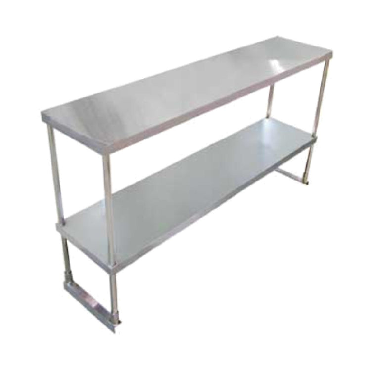 Designed for moderate-volume kitchens, the Omcan 23988 overshelf provides durable stainless steel construction with double tier functionality, ideal for efficient workspace organization in commercial restaurant or cafeteria settings. Its compact design supports organized workflows and long-lasting performance in busy foodservice environments.