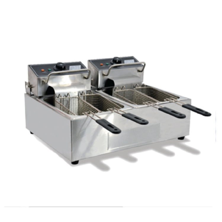 This dual electric countertop fryer delivers reliable performance with two 1.35kW heating elements, ensuring efficient, simultaneous frying. Its stainless steel fry pots resist corrosion and simplify maintenance. Designed for ease of use, the adjustable thermostats allow precise temperature control, while the stainless steel exterior withstands rigorous culinary environments. The unit is ideal for mid-volume fryers in fast-paced kitchens, supporting smooth workflow and quick turnaround times. Its integrated limit switch provides safety and operational stability.